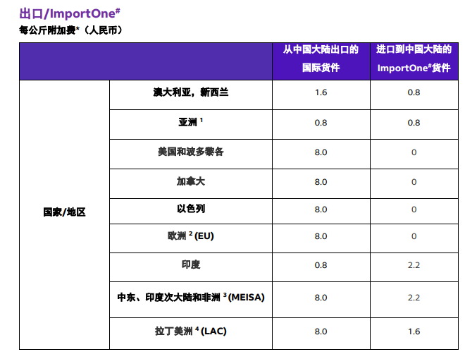 注:在托运量提高、运力需求增加、运营成本上升以及运输网络面临多重压力时期,FedEx 或将征收需求附加费。